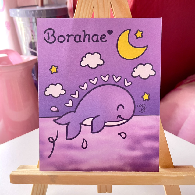 Illustration K-pop Borahae, mini carte (11,2x8,9cm), papier 200g