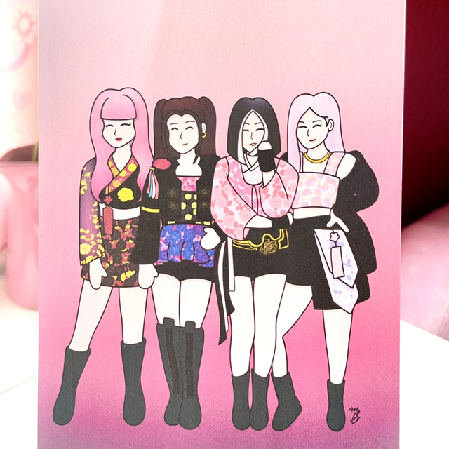 illustration fanart inspiré du K-pop girlgroup Blackpink, format A6, papier 200gr